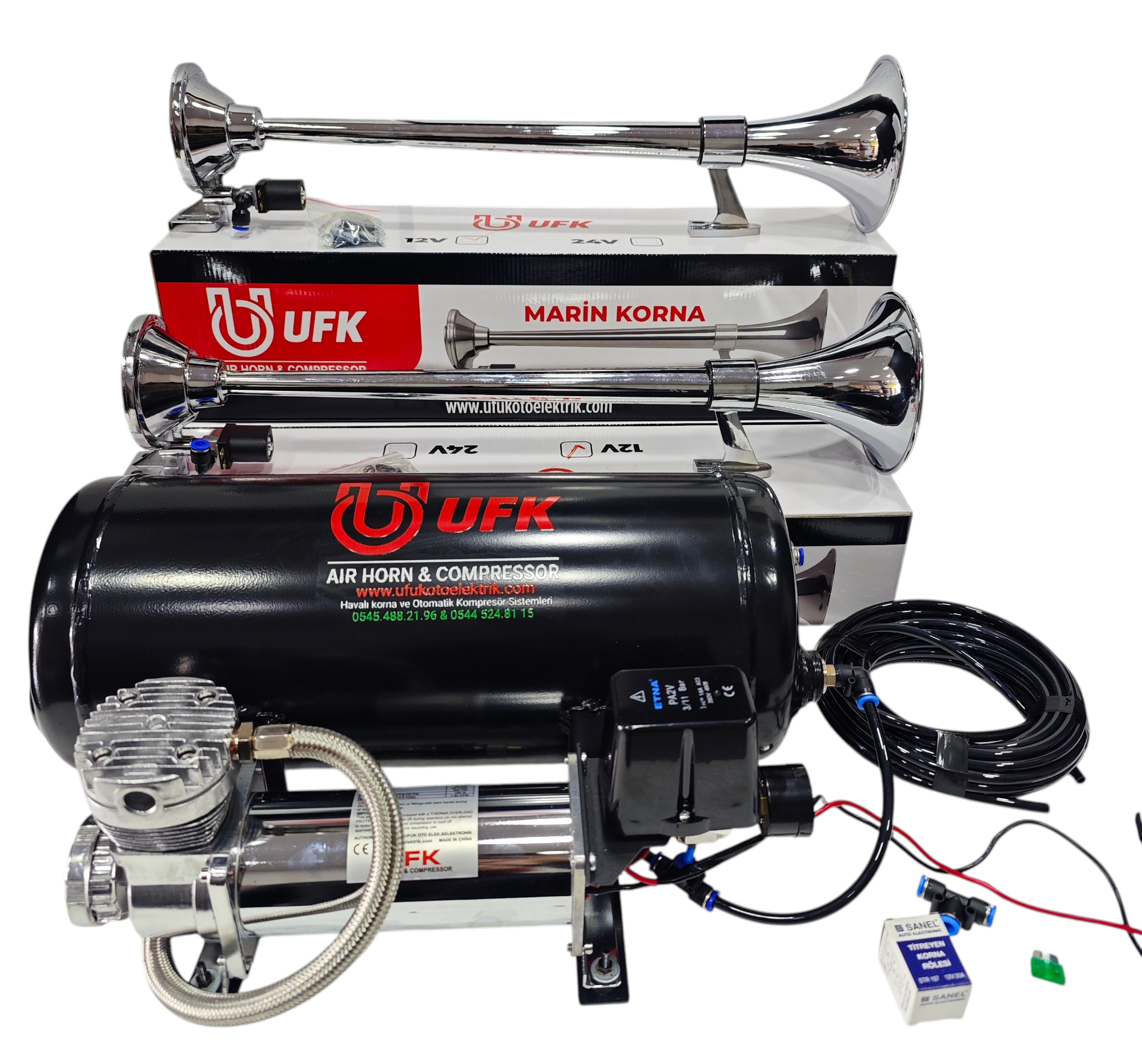 OTOMATİK KOMPRESÖRLÜ ÇİFTLİ TEPE MARİN HAVALI KORNA SETİ